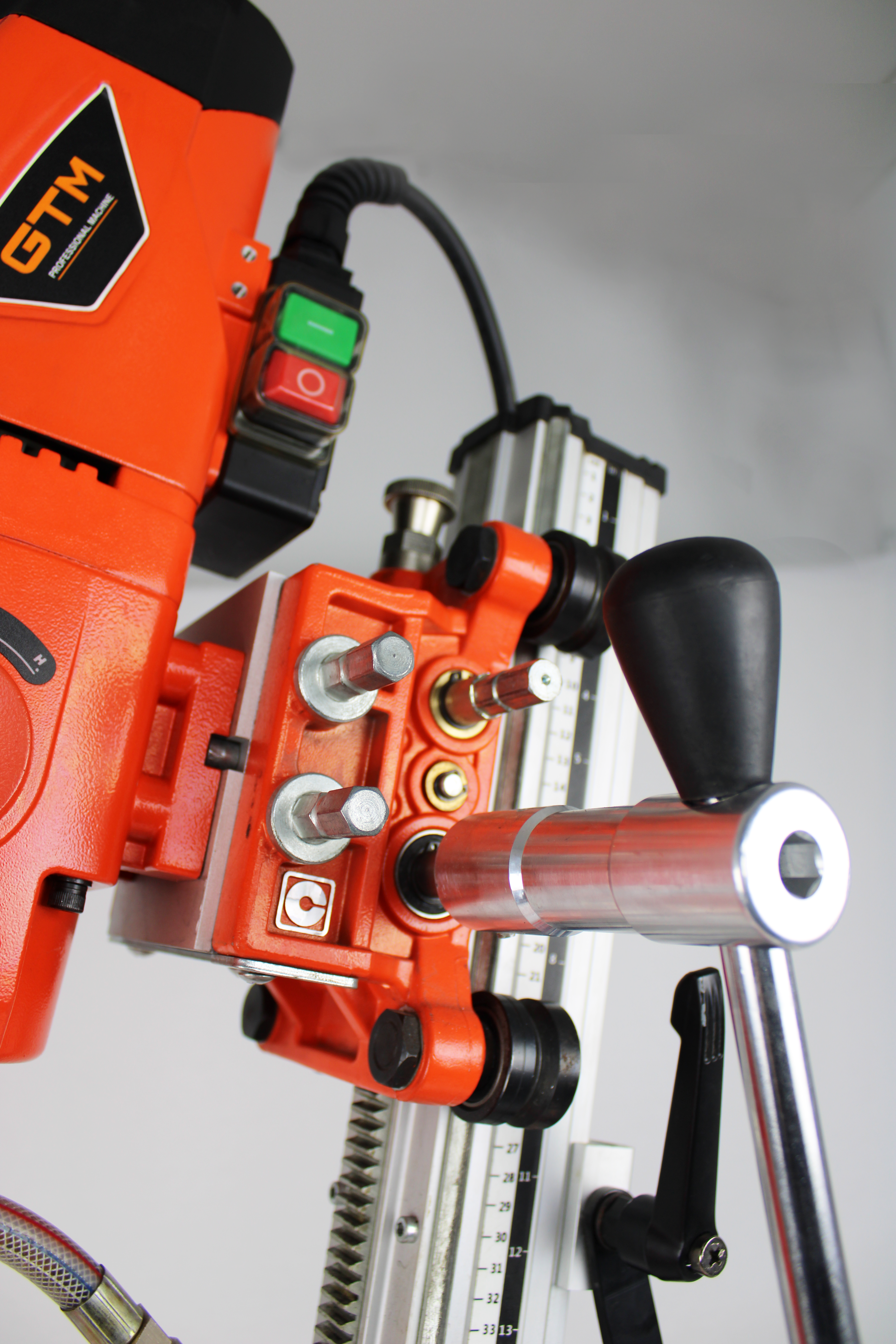 Установка алмазного буріння GTM DK-250/2/45 – це високоефективне електрообладнання, призначене для мокрого буріння отворів у бетонних, кам’яних, цегляних і гранітних поверхнях за допомогою алмазних коронок. Ця модель фіксується на спеціальній стійці (станині), яка входить в стандартну комплектацію. Підключається до системи водяного охолодження і дозволяє проробляти отвори діаметром до 250 мм. Алмазна коронка кріпиться безпосередньо до шпинделя без використання патрона.