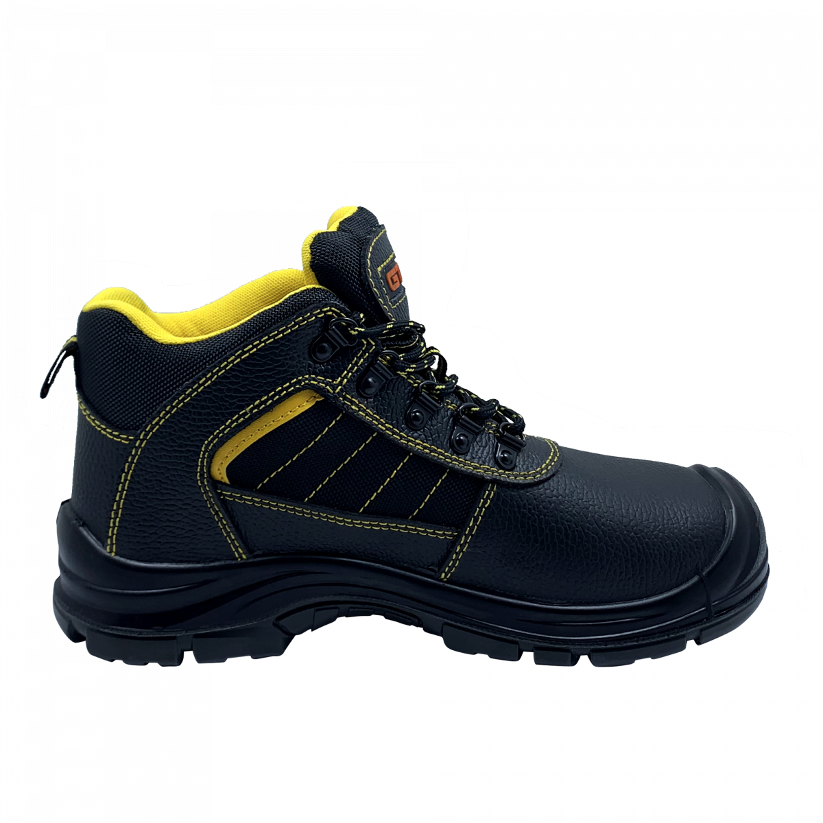 Високі будівельні черевики GTM SM-079 Power – зручна робоче взуття для повсякденного використання з захисним сталевим носком, який витримує ударне навантаження до 200 Дж. Верх черевик виготовлений з натуральної шкіри і доповнений спеціальними світловідбиваючими вставками. Підошва: поліуретанова, двошаровий, лита. Має діелектричну, антистатичну і антиковзну обробку. Стійка до впливу масел, палива, агресивним розчинів кислот і лугів з концентрацією до 20% і контактному нагрівання до 110 С. Носок в черевиках має додаткову сталеву вставку, яка витримує ударне навантаження до 200 Дж. Енергопоглинаюча дихаюча устілка з прошивкою проти ковзання.