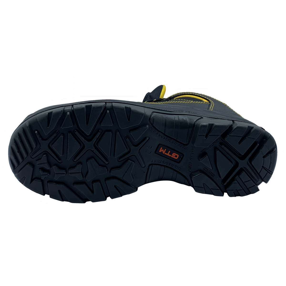 Черевики GTM SM-079 – якісне робоче взуття для повсякденного використання. Черевики відповідають міжнародному стандарту захисного взуття EN ISO 20345: 2011. Верх черевиків виготовлений з натуральної шкіри і доповнений спеціальними світловідбиваючими вставками. Підошва двошарова, складається з поліуретану і нанесена методом лиття, завдяки чому надійно кріпиться до верху. Матеріал підошви має антистатичну і антиковзну обробку, стійкий до впливу масел і палива, агресивним розчинів кислот і лугів з концентрацією до 20%, а також контактного нагрівання до 110 С.