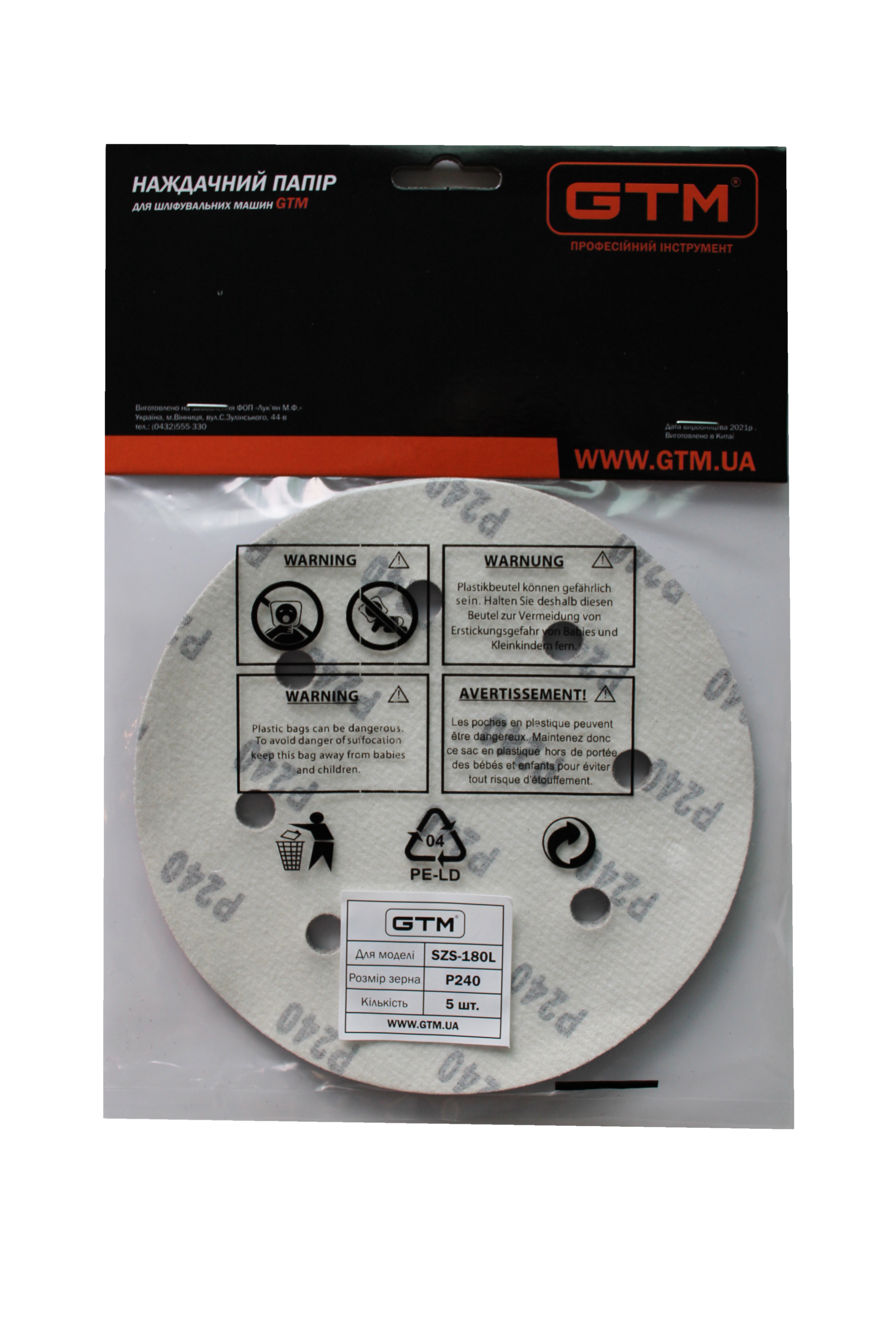 Круг шліфувальний 180мм Р-100 липучка шліфкруг для шліфмашини GTM SZS-180L (жираф)