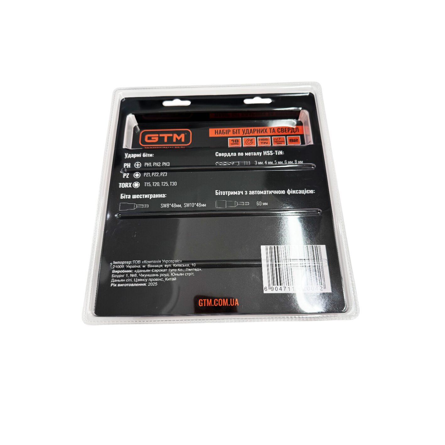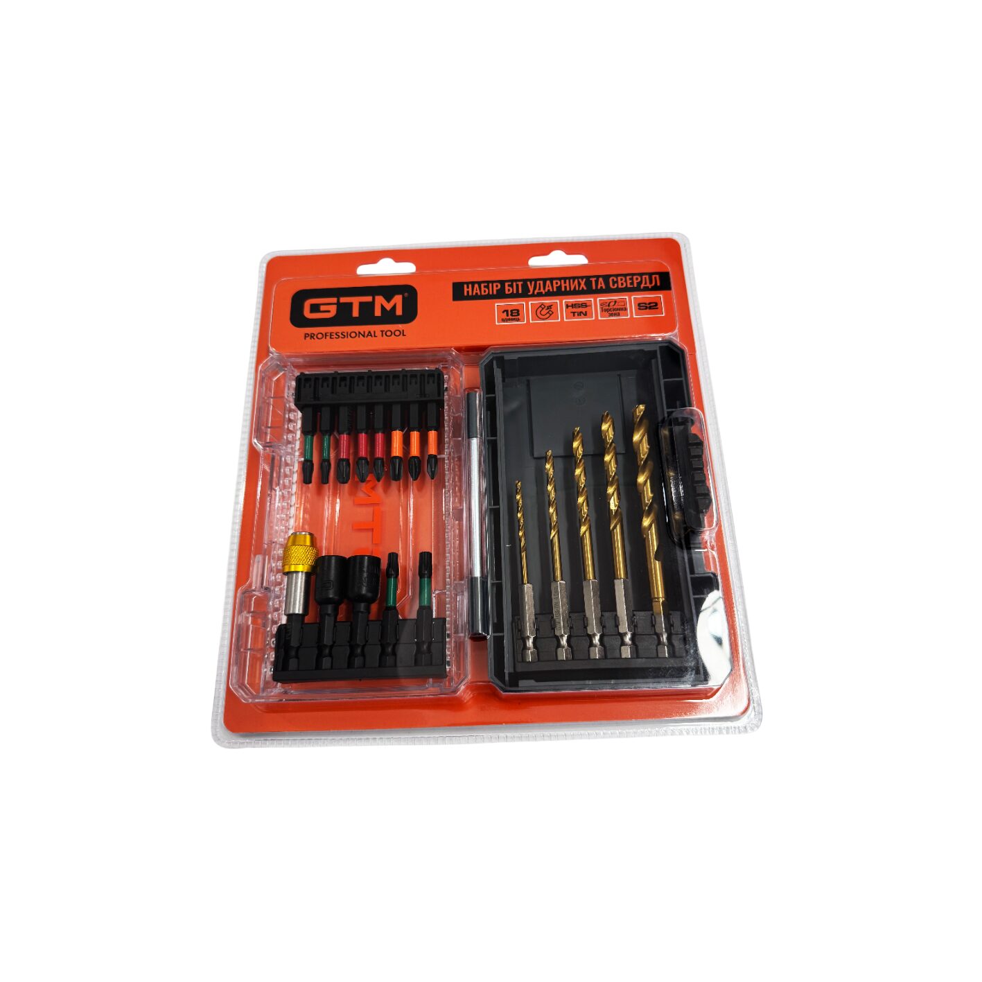 Набір біт ударних та свердл GTM SBK-18 18 од. тримач біт шестигранні біти