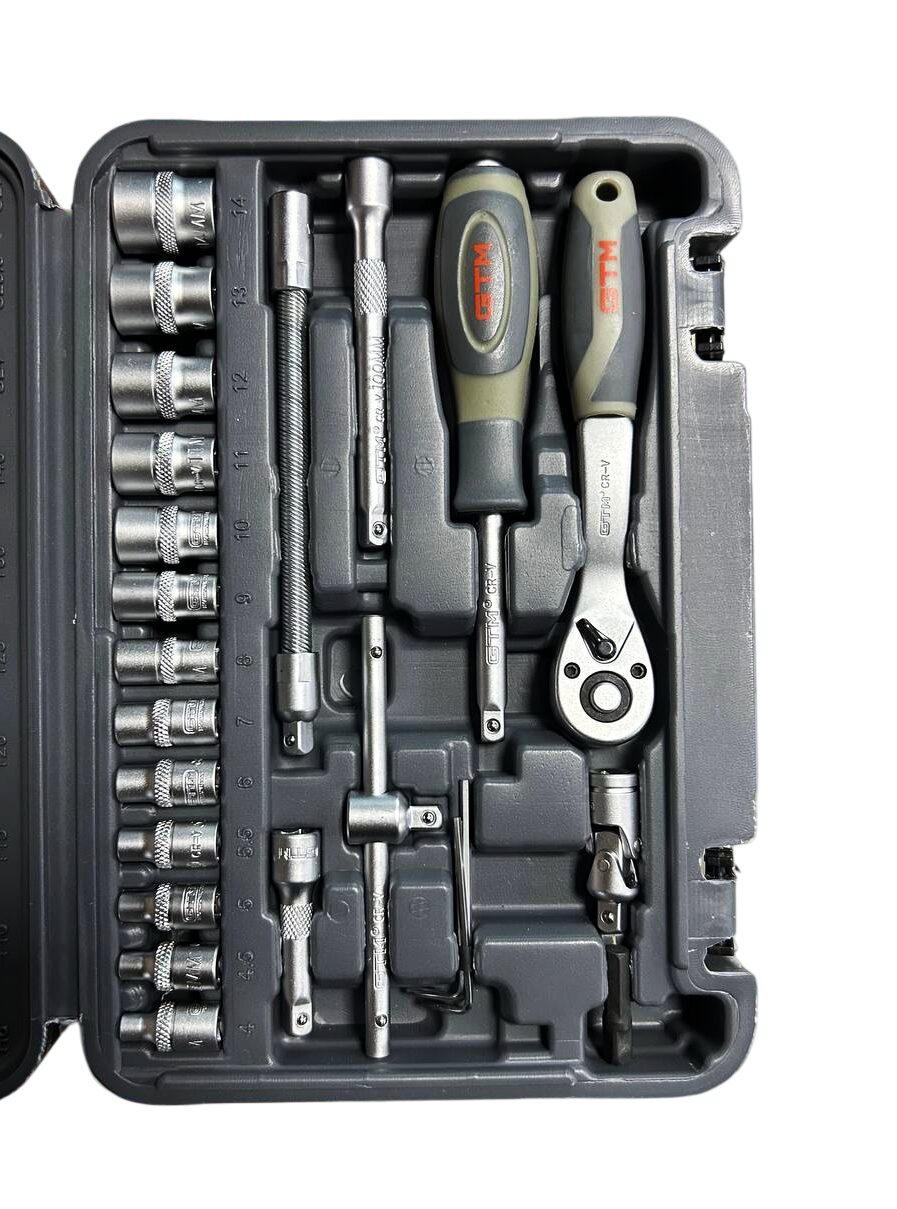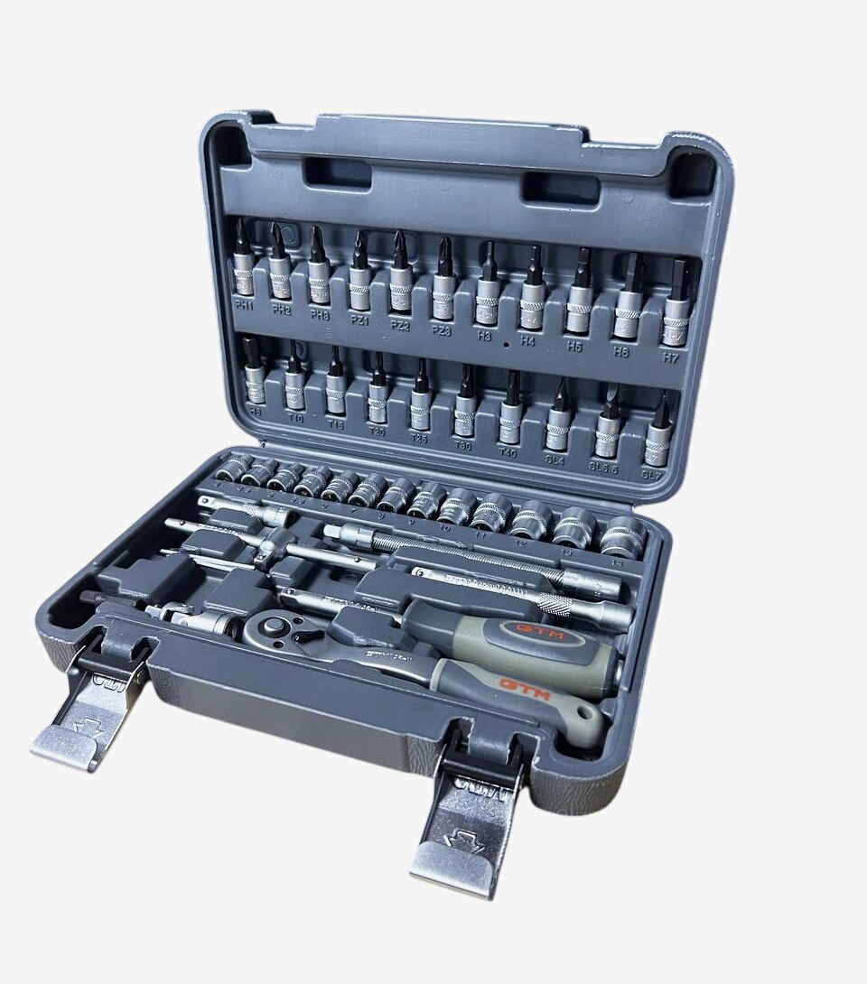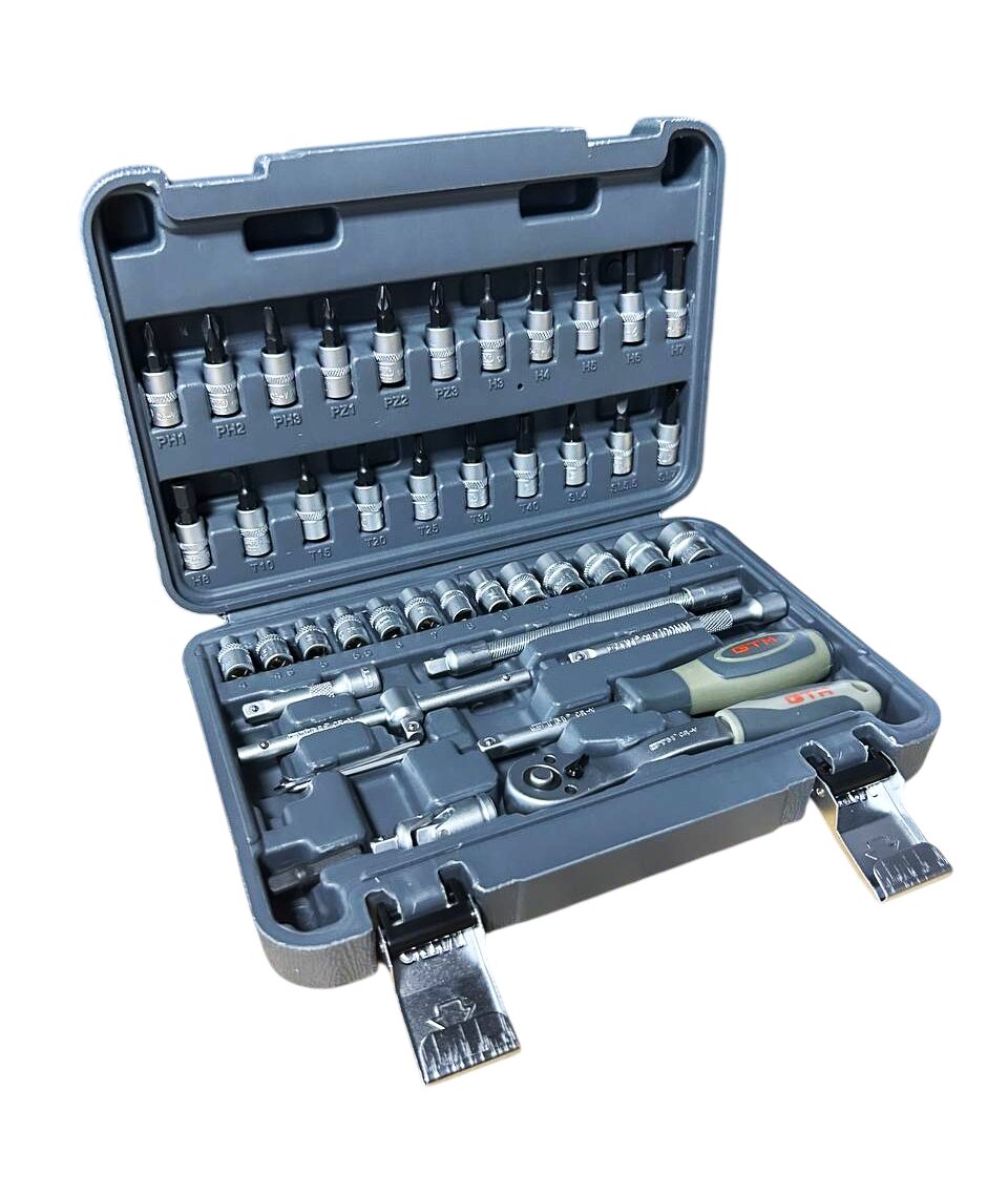 Набір інструментів GTM GTS-046 на 46 одиниць — це універсальне рішення для роботи з різьбовими з’єднаннями, дрібного ремонту, монтажу та сервісних робіт. Цей набір торцевих головок 1/4″ від 4 до 14 мм, виготовлений з високоякісної хромванадієвої сталі (CrV), забезпечує підвищену міцність, стійкість до зносу та довгий термін служби. Тріскачка з механізмом на 72 зубці (72T) гарантує точне та плавне налаштування моменту затягування навіть у важкодоступних місцях. Двокомпонентна ергономічна рукоятка забезпечує комфорт під час роботи з інструментами та запобігає ковзанню рук.