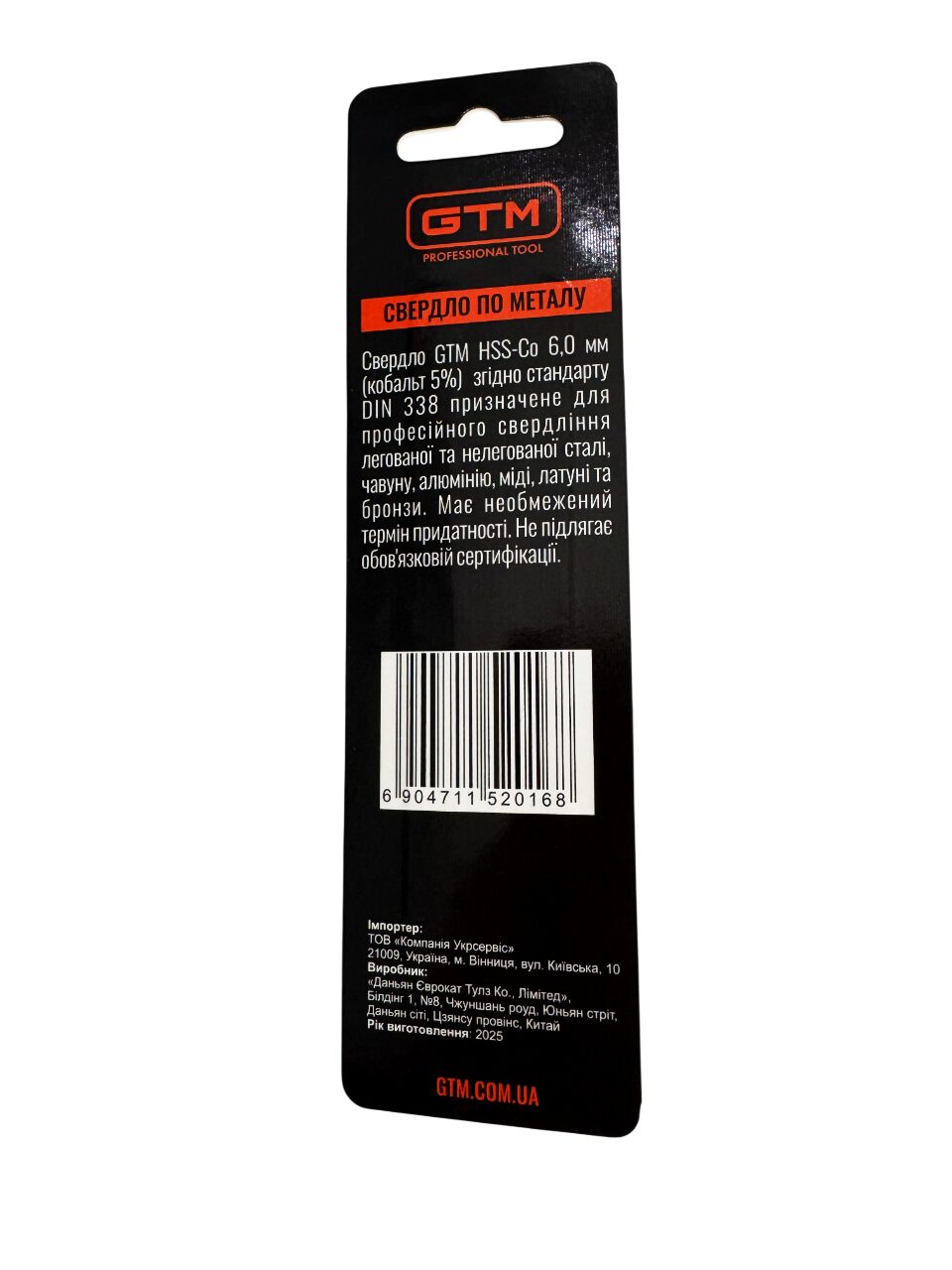 Свердло 6 мм GTM HSS-Co5 блістер