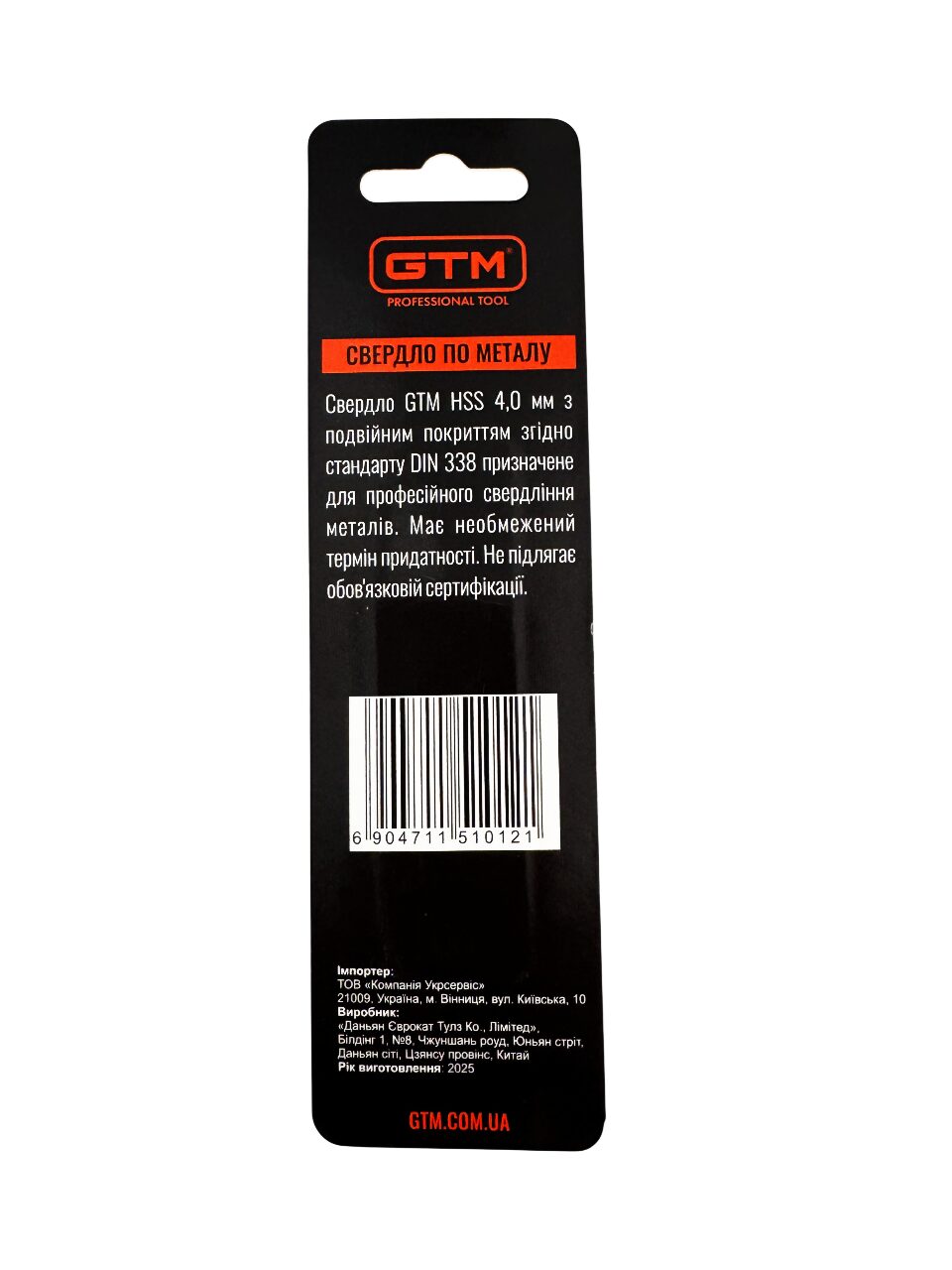 Свердло GTM EM2-040B 4 мм HSS 2 шт блістер з подвійним покриттям