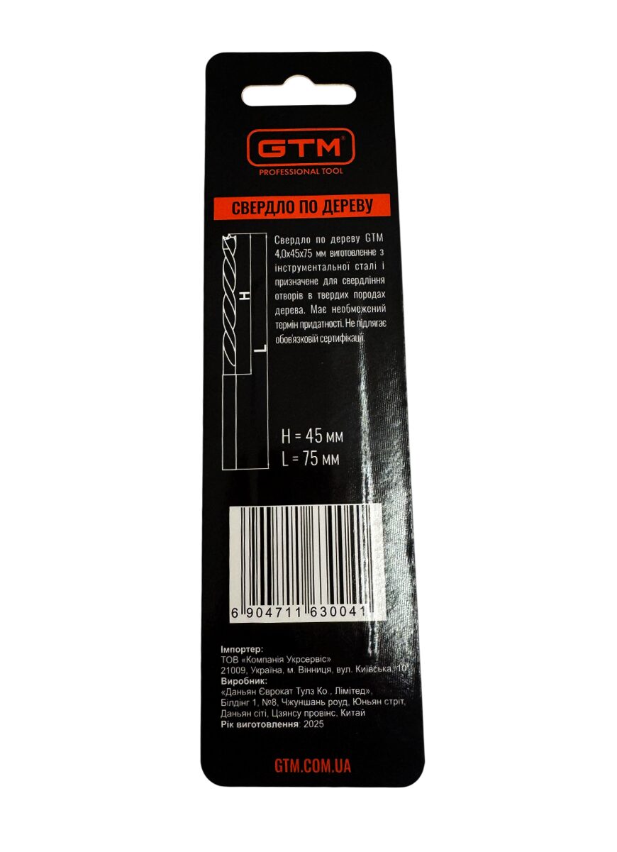 Свердло GTM по дереву 4.0 мм