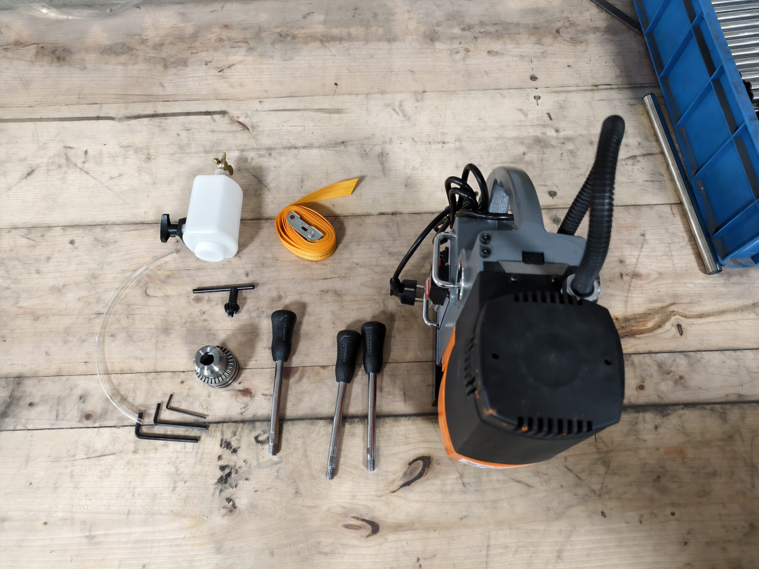 Свердлильний верстат з електромагнітним тримачем GTM MCD32 постачається в повній комплектації для негайного використання.