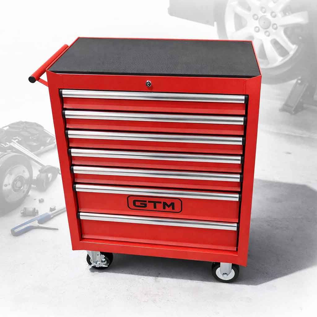 Візок інструментальний GTM TRGL2007 (тумба) на колесах 7 відділень з центральним замком — це ідеальне рішення для організації інструментів у гаражі, майстерні або на СТО. Завдяки продуманій конструкції, високоякісним матеріалам і мобільності, цей інструментальний візок забезпечує максимальний комфорт роботи та швидкий доступ до необхідного інструменту.